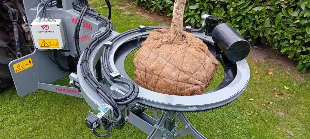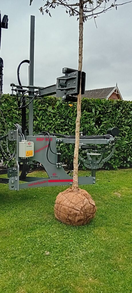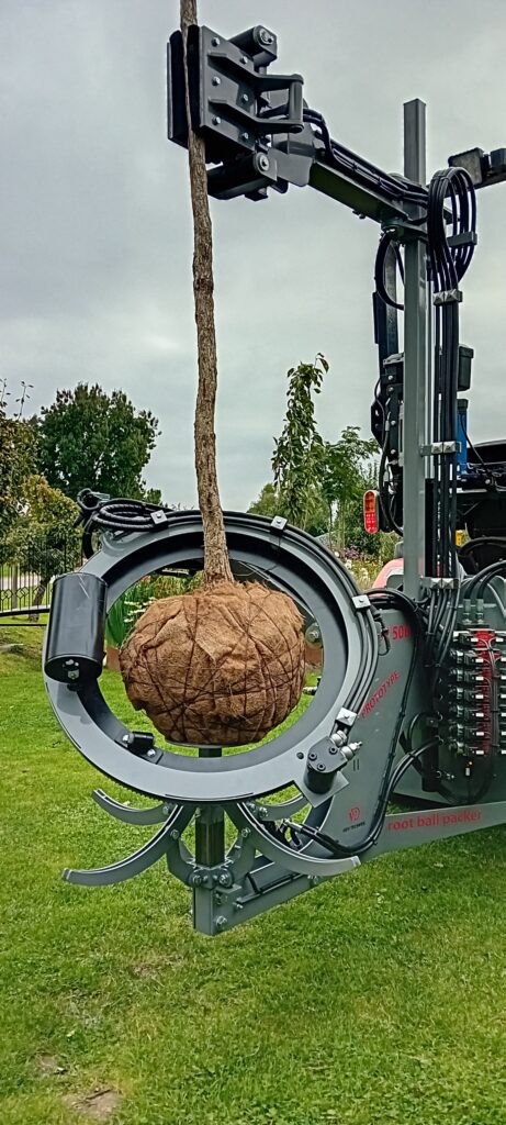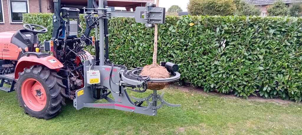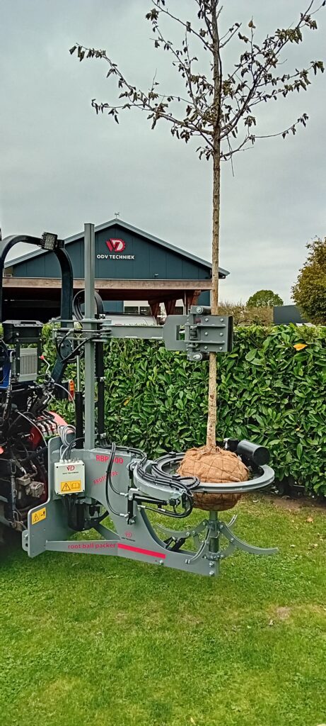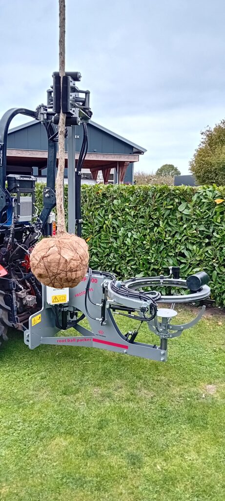 Wortelkluiten inpakken was nog nooit zo eenvoudig. Met de Root Ball Packer worden kluiten van 30 tot 70 cm volledig automatisch omwikkeld. De zwenkarm pakt de boom direct uit de rij, zodat zwaar handwerk verleden tijd is.